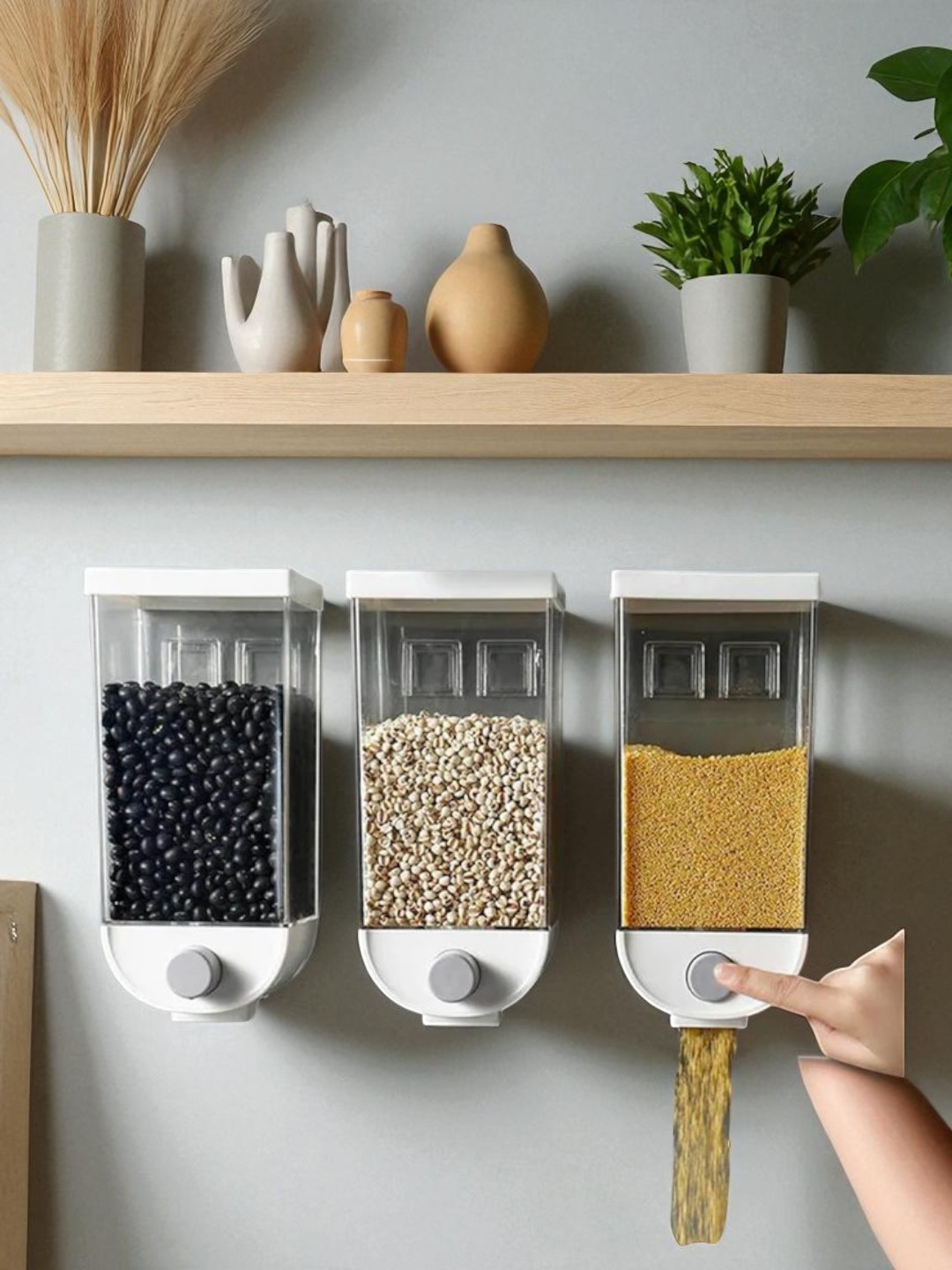 El Dispensador de Cereales y Granos es la solución perfecta para almacenar y servir alimentos secos de forma ordenada y práctica. Con tapa hermética que conserva la frescura, y botón dosificador que permite extraer la cantidad exacta sin derrames, es ideal para cereales, arroz, granos, semillas o frutos secos. Mide 25 cm de alto, 11.8 cm de ancho y 9.5 cm de profundidad, y su diseño compacto ahorra espacio. Incluye adhesivo para instalar en la pared, optimizando tu cocina y manteniéndola limpia y organizada. Un accesorio moderno, funcional y fácil de usar que aporta comodidad y estilo a tu hogar.
