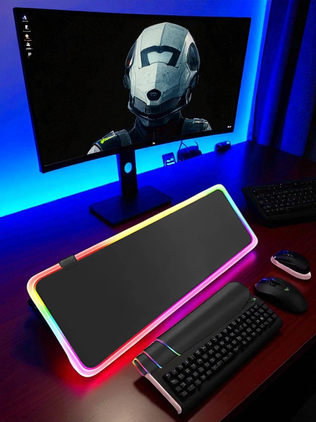 Gracias a su amplio tamaño, se adapta perfectamente a teclados y mouse, ofreciendo comodidad en cada movimiento. Este pad es ideal tanto para gamers que buscan precisión y estilo, como para profesionales que desean mejorar la ergonomÃa y estética de su escritorio.