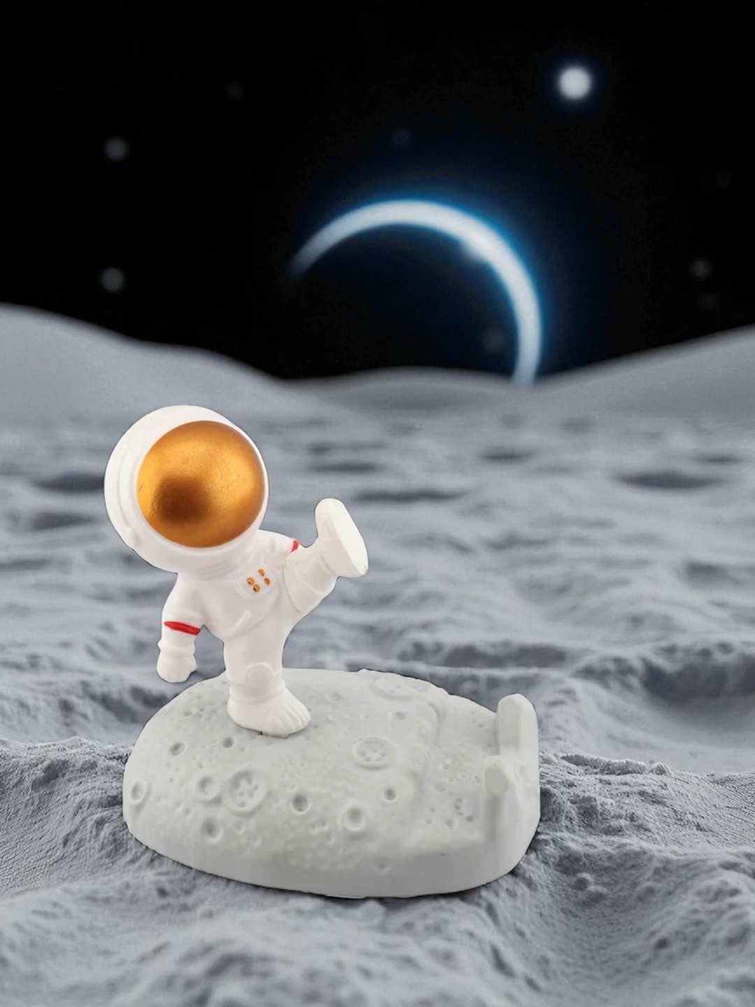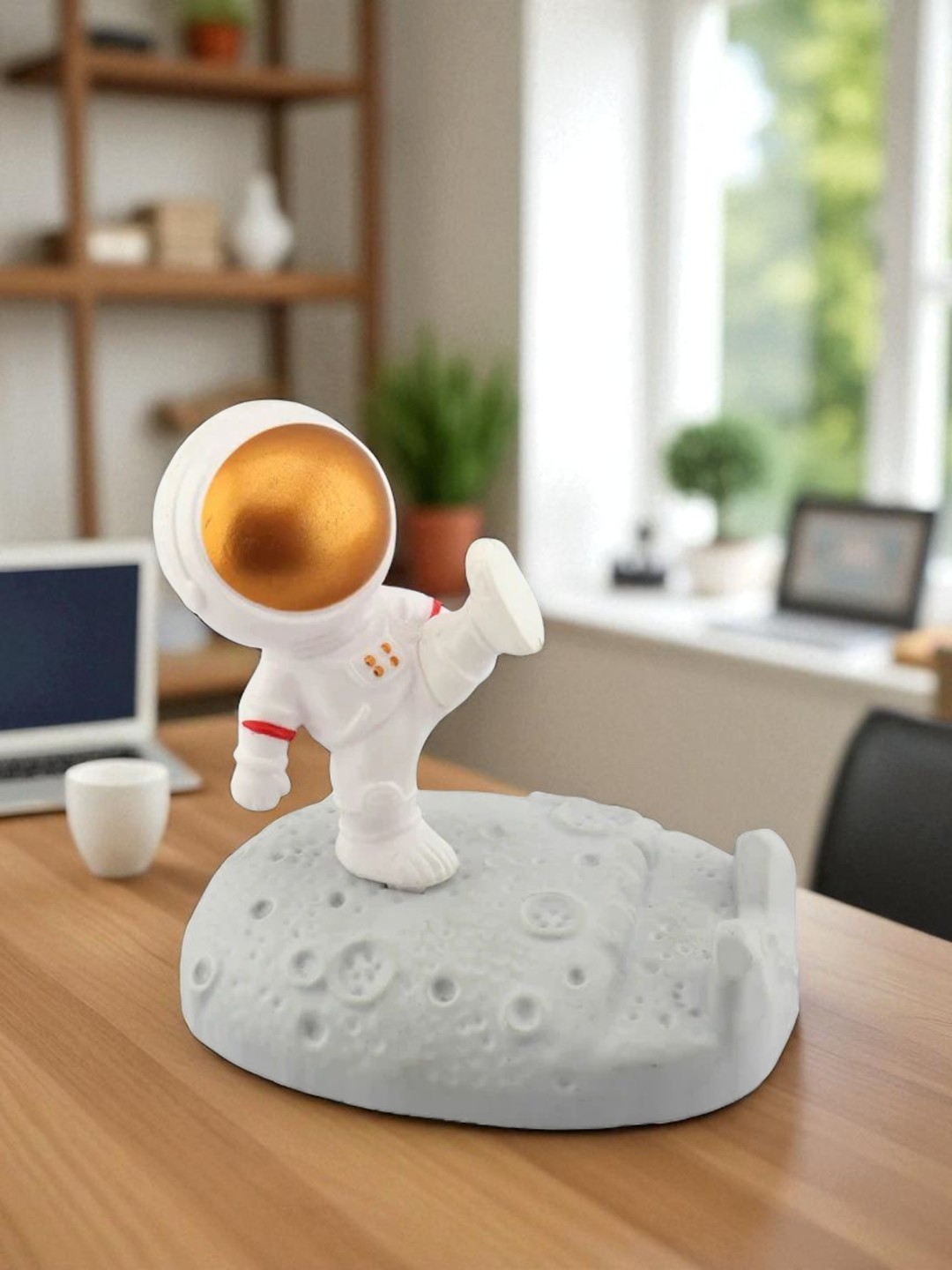 El porta celular innovador para escritorio con diseño de muñeco astronauta es un accesorio funcional y decorativo que combina practicidad con estilo. Fabricado con materiales resistentes y de alta calidad, este soporte asegura estabilidad y durabilidad, permitiendo sostener tu celular de manera segura mientras trabajas, estudias o disfrutas de tus momentos de entretenimiento. Su diseño único en forma de astronauta apoyando el celular lo convierte en un elemento llamativo, ideal para quienes buscan un toque original y creativo en su escritorio o espacio personal.