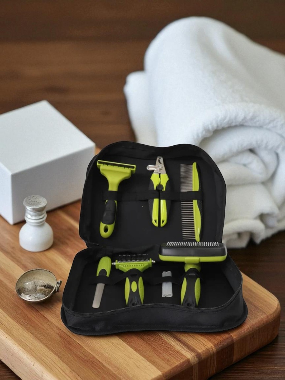 Todo el kit viene en un maletín resistente y compacto, que permite un almacenamiento organizado y seguro de cada herramienta, evitando pérdidas y daños. Su diseño portátil y ligero facilita transportarlo a cualquier lugar, ya sea en casa, de viaje o en visitas al veterinario.
