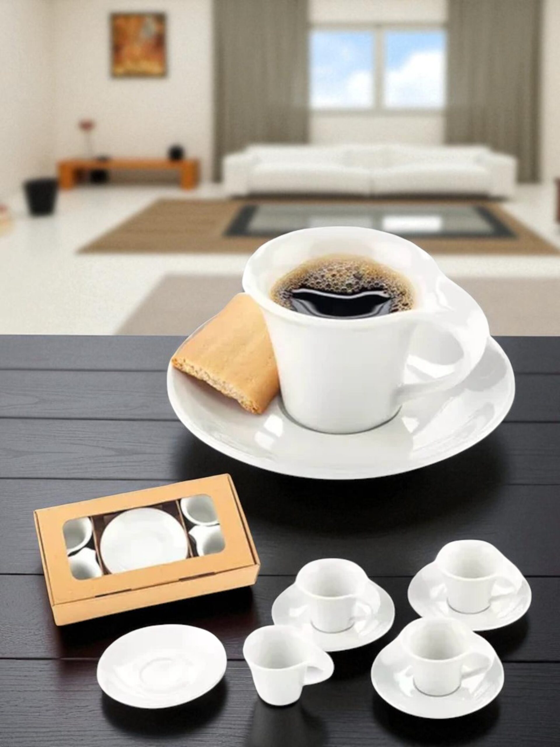 Este elegante Set de Porcelana Espresso de 8 piezas incluye 4 tazas redondas de 1,5 oz (44 ml) y 4 platos a juego, perfectos para disfrutar del café en su máxima expresión. Fabricado en porcelana resistente y de alta calidad, ofrece una experiencia sofisticada y duradera. Las tazas miden 5 cm de largo, 9 cm de ancho y 6,5 cm de diámetro, mientras que los platos tienen 12 cm de diámetro y 2 mm de grosor. Ideal para el hogar o uso profesional, este set combina estilo, funcionalidad y elegancia, siendo perfecto para amantes del café que valoran los detalles.